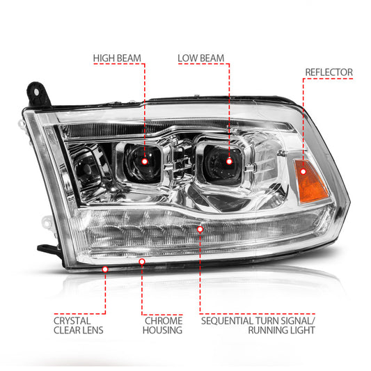 ANZO 09-19 Dodge RAM 1500 / 10-18 2500/3500 LED Proj Headlights SeqSig Chrome - Pair
