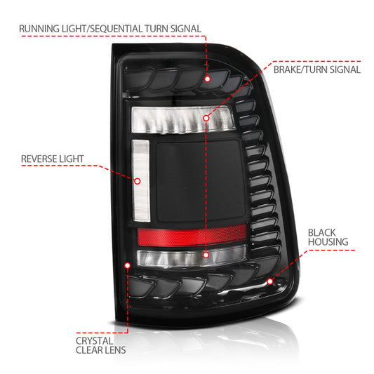ANZO 19-24 RAM 1500 (Factory LED Models ONLY) Full LED Tail Lights SeqSig Black - Pair