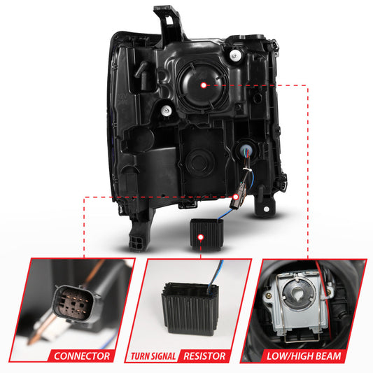ANZO 15-20 GMC Yukon (Incl XL - Factory Halogen Models) Full LED Proj Headlights Black - Driver Side