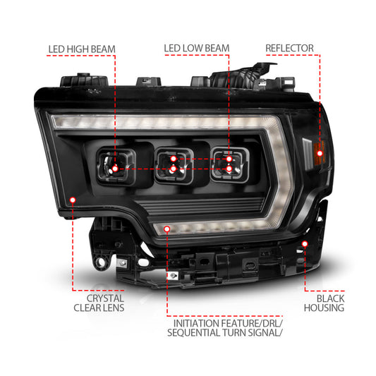 ANZO 19-24 RAM 1500 (New Body/OE Halogen) Full LED Proj Headlights DRL/SeqSig Black - Driver Side