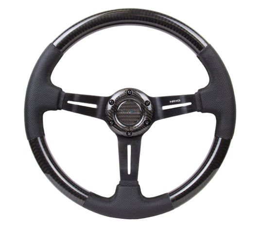 NRG Carbon Fiber Steering Wheel (350mm / 1.5in. Deep) Leather Trim w/Blk Stitch & Slit Cutout Spokes