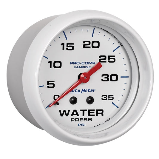 Autometer AutoGage 2-5/8in. / 35 PSI Mechanical Water Press Gauge - Marine White