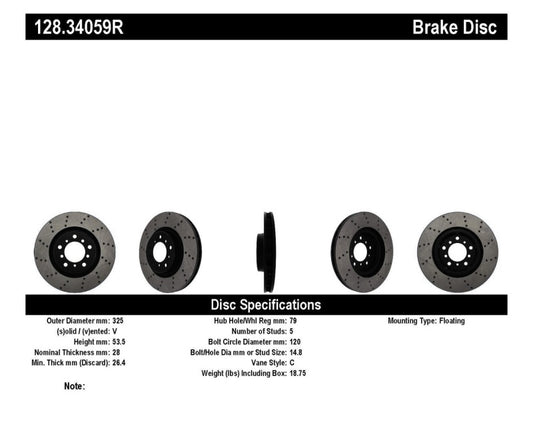 StopTech 01-07 BMW M3 (E46) / 00-04 M5 (E39) Drilled Right Rear Rotor