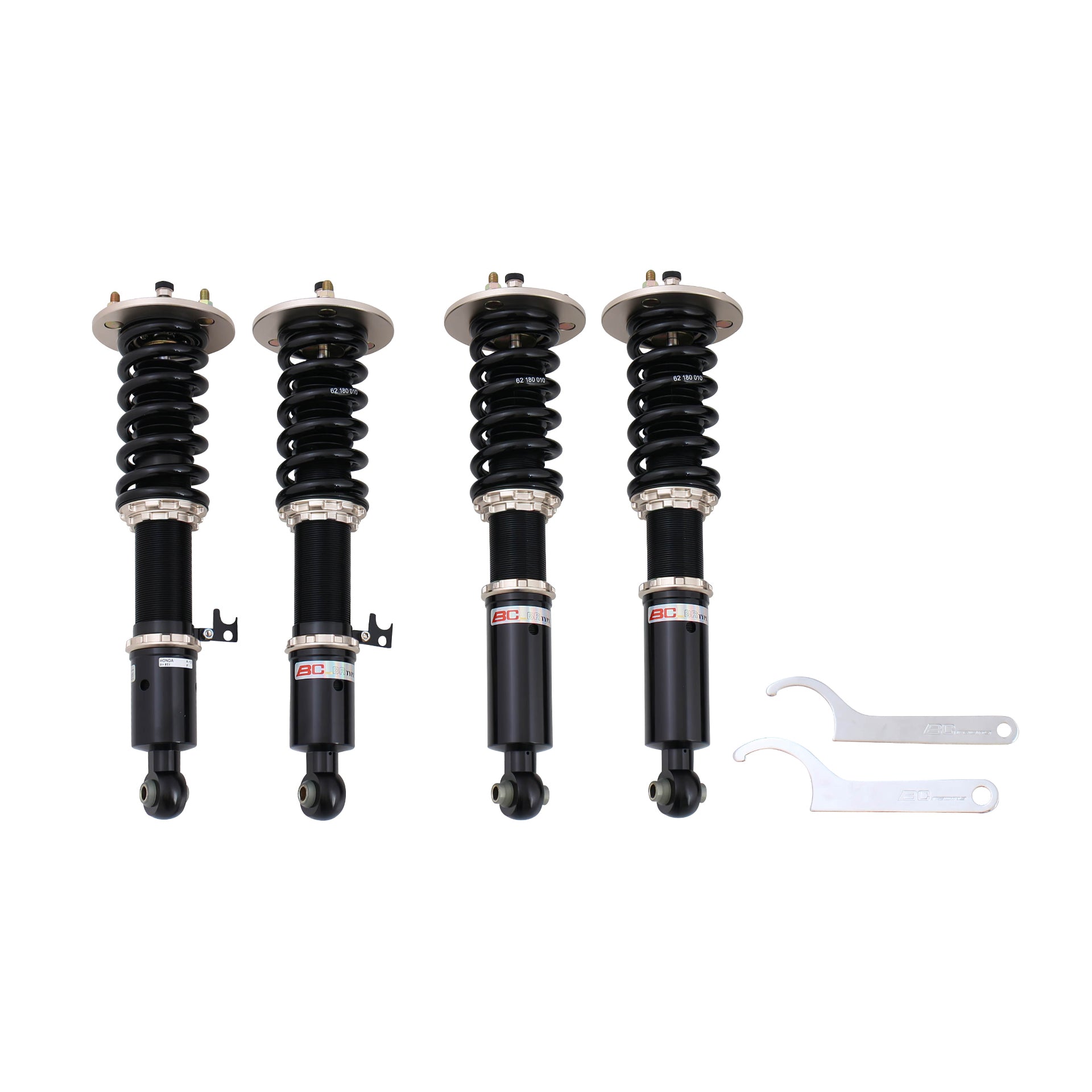 The BC Racing BR Series offers the most affordable entry into coilover suspension without sacrificing performance, comfort, build quality, vehicle height, or handling. This is done by extensively testing each vehicle then refining the coilover characteristics as many times as needed to ensure the most well-balanced and affordable aftermarket suspension conceivable. BC Racing takes great pride in choosing spring rates for our off-the-shelf kits that strike the perfect balance between comfort and performance so you're never stuck with an oversprung suspension like many other brands sell. BC Racing offers one of the widest ranges of damping adjustment with 30-clicks of compression/rebound adjusted simultaneously on the BR Series. With meticulously chosen spring rates, damper valving, and one of the widest adjustment ranges in the industry, you can't go wrong with the BC Racing BR Series Coilover System.