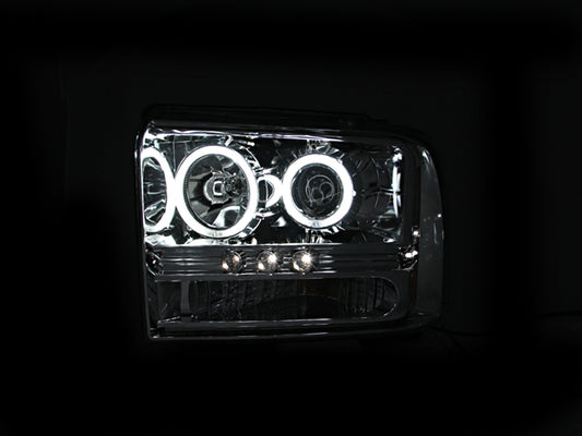 ANZO 2005-2007 Ford Excursion Projector Headlights w/ Halo Chrome w/ LED Strip (CCFL) 1pc