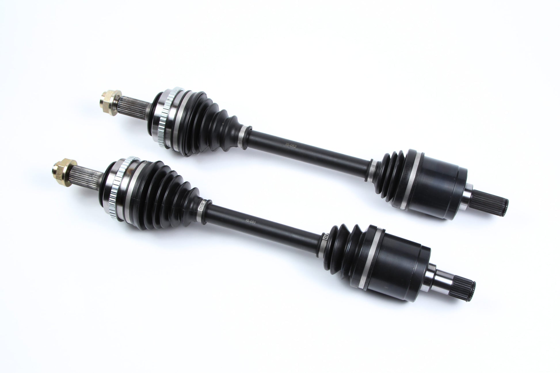 THE ULTIMATE IN HIGH PERFORMANCE CV AXLES, INSANE SHAFTS 1000HP AXLES ARE MADE FROM CHROMOLY STEEL THAT IS PUT THROUGH OUR PROPRIETARY ANNEALING AND HEAT TREATMENT PROCESS THEN CRYOGENICALLY TREATED TO PROVIDE MORE STRENGTH TO HANDLE TODAYS HIGH HORSEPOWER VEHICLE DEMANDS. CAPABLE IN HANDLING UP TO 1000 WHEEL HORSEPOWER, THESE AXLES HAVE BEEN REAL WORLD TESTED AND PROVEN TO HANDLE EXTREME CONDITIONS ON OR OFF THE TRACK. ALL INSANE SHAFTS AXLES INCLUDE REMOVABLE ABS RINGS (IF APPLICABLE) AND NEW SPINDLE NUTS. PLEASE CONTACT US FOR CUSTOM APPLICATIONS.
