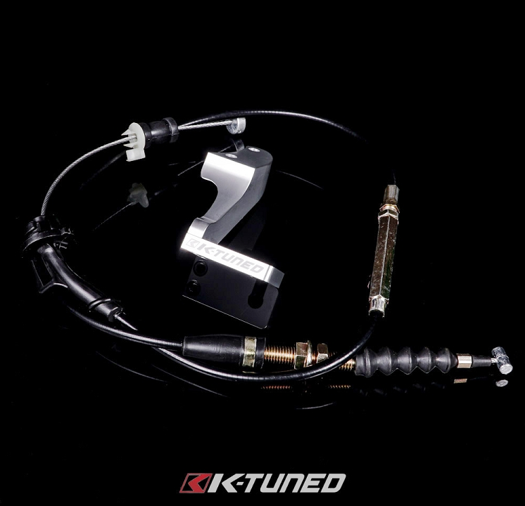 Tired of having a throttle cable long enough you could dry your laundry on it? K-Tuned has developed a custom throttle cable bracket and matching properly sized cable. No more long throttle cable all over the engine bay, this one is just long enough to reach the firewall with no wasted length and just enough slack. Cable is a custom sized OEM quality cable. Bracket is powder coated black.Â