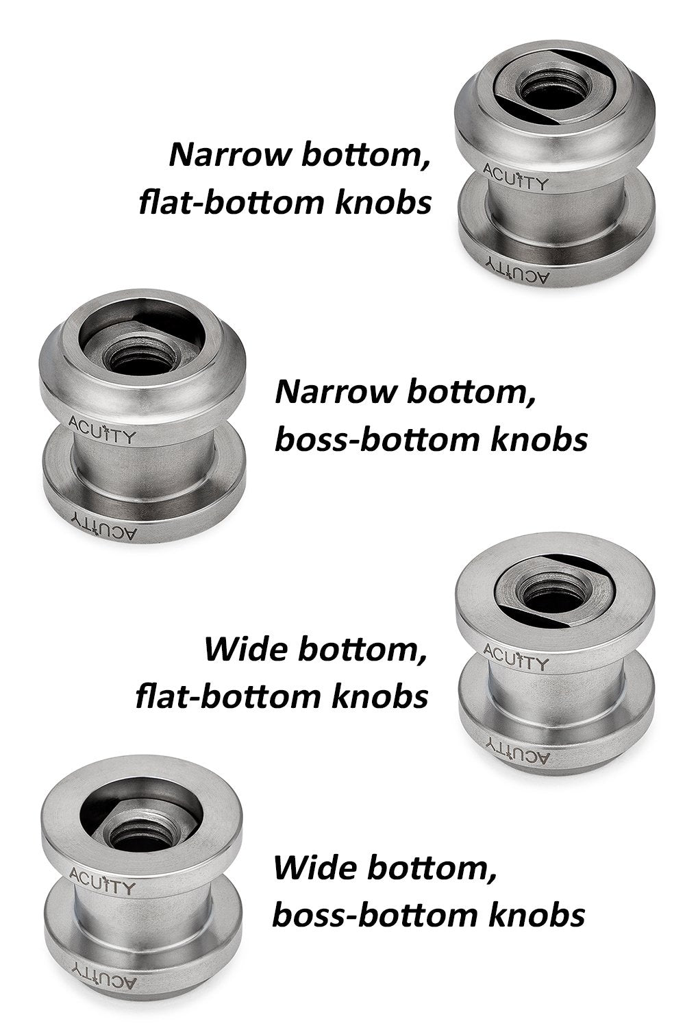 Gone are the days of sagging shift boots, broken plastic shift boot collars, and shift boot collars that don't match the diameter or style of your shift knob. ACUITY designed this Shift Boot Collar Upgrade to allow use of virtually any M10x1.5 shift knob in your Honda without sacrificing fit and finish between the shift boot and shift knob. This kit includes 2 binding nuts, one meant for flat-bottomed knobs, and the other meant for boss-bottomed knobs (like modern Civic Type R and Honda Factory Performance designs). The boot collar is reversible and can be flipped to match your knob's base diameter, whether it be a traditional narrow-bottomed knob (with a 22mm lower diameter) or the newer style wide-bottomed knobs (with a 28mm lower diameter). An integral retaining feature lets you easily pop the boot collar on and off many times without problems, so you no longer have to worry about breaking the OEM plastic boot ring when removing your shift knob. The supplied binding nuts are turned and milled from stainless steel and have flats for a 12mm open-ended wrench. The boot collar is made from 300 series stainless steel and is all markings are laser etched.